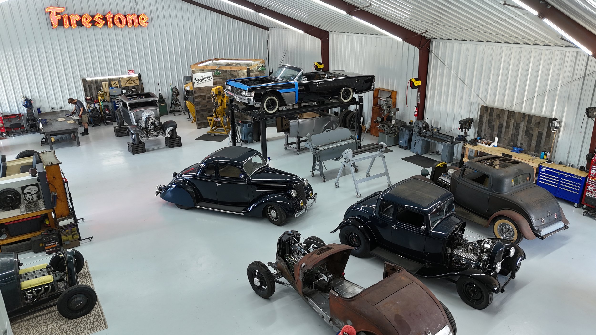 The showroom 1934 Ford Roadster 1953 Willys Jeep CJ3A 1933 Ford Roadster Convertible 1932 Ford Roadster 1933 Ford Coupe Belly Tanker 1932 Ford 3 Window Metal Work